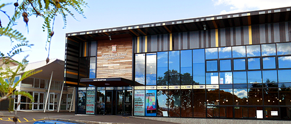 This standout building was designed by Vincent Kumar of Jasmax architects. Massey High School’s Performing Arts Centre is a visual representation of the students’ diversity and school pride. What better way to reinforce this pride, than by using the school colours as a key element in the building’s design?