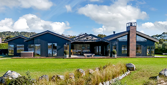 This stunning home pays homage to the classic New Zealand boatshed with its simple shape of four linked pavilions. The home is constructed on the edge of the Mangawhai estuary, the perfect setting to reflect the boatshed theme. Closer inspection reveals a complex and detailed structure, with accents of upcycled historical building materials from historic sites around the country.